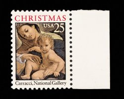 703 nh 2427b image#2427b, 25c Madonna, lithographed red omitted, right sheet-margin single, o.g., n.h., extremely fine; only 50 exist; 1995 PF certificate. (Image) 850.00