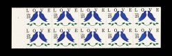 707 nhK 2441b image#2441b, 25c Love stamp, booklet pane of ten, bright pink omitted, one error pane contained in a complete booklet along with a normal pane, o.g., n.h., very fine; only 20 error panes were originally discovered, but some of these were broken up into singles. (Image) 1,900.00
