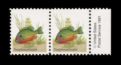 712 nh 2481a image#2481a, 45c Sunfish, black omitted, right margin copyright horizontal pair, o.g., n.h., very fine. (Image) 1,050.00+