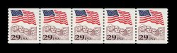 716 nh 2523c image#2523c, 29c Flag over Mount Rushmore coil, "Toledo brown" color variety, plate no. 7 strip of five, o.g., n.h., very fine. (Image) 180.00
