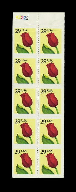 717 U 2527d image#2527d, 29c Flower booklet pane of ten, imperforate horizontally, error pane contained in an unexploded booklet with a normal pane, o.g. n.h., top pair affected by natural paper wrinkle, very fine; one of the rarest of all the modern booklet pane errors, with only a few panes known. (Image) 2,750.00