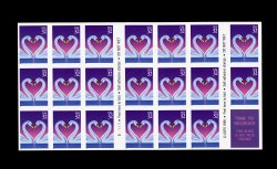 742 nhU 3123c image#3123c, 32c Swans, booklet pane of 20, no die cutting, complete unfolded booklet completely imperforate, very fine; listed but unpriced as a booklet pane, cataloged simply as nine pairs. (Image) 2,250.00+