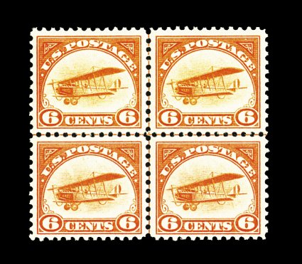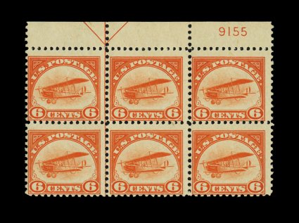 750 nhX C1 image#C1, 6c Orange, full top margin, arrow and plate no. 9155 block of six, extraordinarily rich and vibrant color, o.g., n.h., fine. (Image) 1,050.00