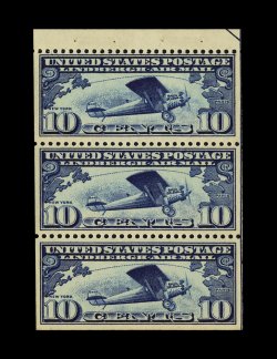 757 nh C10a image#C10a, 10c Lindbergh booklet pane of three, the scarce pos. B, with guide line and arrow at right, well centered and exceptionally fresh, o.g., n.h., choice very fine. (Image) 110.00+