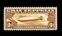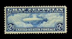 759 nh C13-15 image#C13-15, 65c-$2.60 Graf Zeppelins cplt., fresh colors, o.g., n.h., some gum bends (one heavy bend on the $2.60), fine-very fine. (image 759a) (image 759b) (Image) 2,160.00