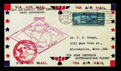 760 F C13-15 image#C13-15, 65c-$2.60 Graf Zeppelins cplt., each tied to a separate first day cover by "Washington D.C./Apr 19/1930" machine cancel, #C13 and C15 on matching red and blue airmail envelopes, #C14 on card, latter two flown with appropriate cachets and backstamps, a very fine and handsome set. (Image) 3,600.00
