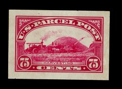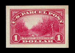 877 P Q1P2a-12P2a image#Q1P2a-12P2a, 1c-$1.00 Parcel Posts, Panama-Pacific small die proofs cplt., an enormously rare complete set of these seldom offered proofs, prepared in 1915 for the Panama-Pacific Exposition it is believed that only three to five sets were printed, with this being the first set we have ever offered, all with strong colors and impressions, some values with typical translucent spots due to hinging, 50c with small translucent inclusion speck, overall very fine; one of the most important proof sets in 20th century United States philately. (image 877a) (Image) 14,400.00