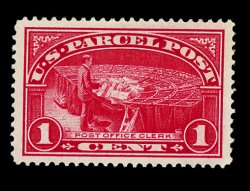 879 nh Q1 image#Q1, 1c Parcel Post, enormously large and perfectly balanced margins all around, intense color and impression, o.g., n.h., extremely fine; an eye-arresting jumbo example. (Image) 9.75