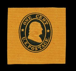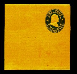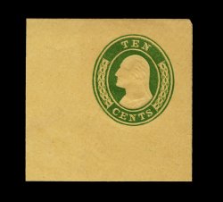 1063 og U18 image#U18, 10c Green on buff, mint cut square, highly desirable full corner example measuring 50x50mm, especially fresh and clean, inconsequential thin spot on side flap only and not at all affecting integral portion of cut square, extremely fine. (Image) 400.00