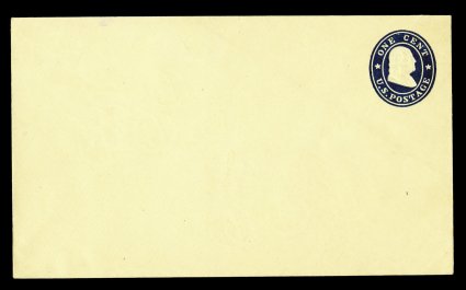 1068 ogc U24 image#U24, 1c Blue on buff, star die, size 7, knife 24, wmk. 1, mint entire, especially clean and fresh for this scarce entire, strong embossing, choice very fine (UPSS #44). (Image) 600.00