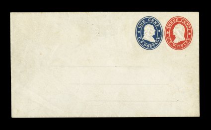 1074 ogc U29 image#U29, 3c + 1c Red and blue on buff, star die, size 7, knife 20, wmk. 1, mint entire, particularly fresh and with strong embossing, choice very fine (UPSS #60). (Image) 825.00