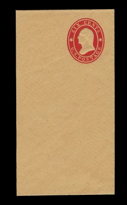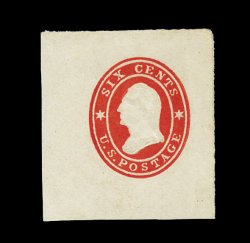 1076 og U31 image#U31, 6c Red on buff, star die, a superb mint cut square, being an extraordinary full corner example measuring an immense 53x99mm (essentially the entire far right hand portion of an entire), incredibly fresh and clean, with strong detailed embossing, extremely fine; without question the most impressive quality example of this cut square rarity we have ever offered; 1997 PF certificate. (Image) 3,500.00