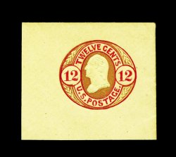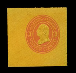 1079 og U37 image#U37, 6c Pink on orange, mint cut square, being a premium quality full corner measuring a balanced 41x41mm, strong color and remarkably detailed embossing, extremely fine; very rare as only about ten cut square examples exist and is virtually unattainable as a choice full corner; ex-Wampler. (Image) 4,750.00
