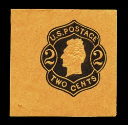 1087 og U49 image#U49, 2c Black on orange, select mint cut square, measuring 35x35mm, exceptionally fresh, with sharp embossing, extremely fine; not often seen this nice. (Image) 1,400.00