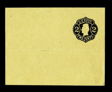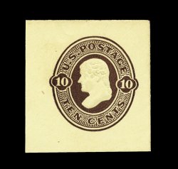 1096 ogc U82a image#U82a, 3c Brown on white, error of color, die 37, size 7, knife 25, wmk. 2, an incredibly rare mint entire of this major color error which has recently been given major catalog status in the Scott catalog, having long been listed in the Thorp and UPSS catalogs, being in extraordinary condition, with excellent color and impression on immaculate paper, plus its edges are quite sharp, extremely fine; one of probably only six known (no cut squares are recorded) and likely to be among the finest available; remarkably this is the third example of this rarity we have had the pleasure of offering, the first realized $11,550.00 in June 2000 as part of the impressive Dr. Jerry Summers collection sold by this firm (his example had negligible soiling), the second was sold in our March 2002 Premier sale and realized $13,750.00 after spirited bidding, and was in remarkable similar quality to the example offered here (UPSS #171A). (Image) 13,000.00