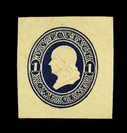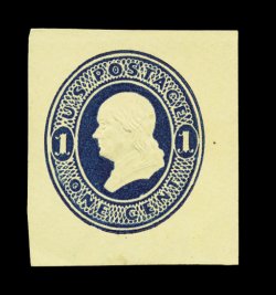 1122 og U110 image#U110, 1c Dark blue on cream, select mint cut square, measuring 34x36mm and being especially fresh, strong color and embossing, a very fine and choice example of this seldom offered cut square. (Image) 1,750.00