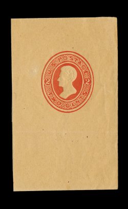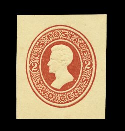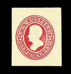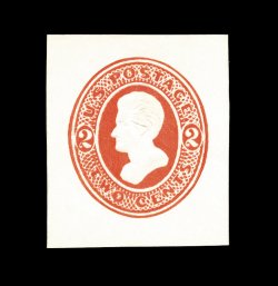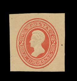 1134 og W138 image#W138, 2c Vermilion on manila, an extraordinarily well margined example of this mint cut square rarity, being one of only six cut squares recorded and there are no known entires, measuring a full 33x37mm, quite fresh and clean, with rich color and well defined embossing, there are a couple of small thin spots of little importance considering how few are known, and most have small faults, otherwise very fine and choice; one of the keys to ever completing a collection of United States cut squares; 1995 PF certificate. (Image) 32,500.00