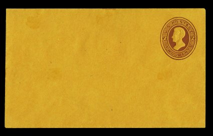 1126 ogc U125 image#U125, 2c Brown on orange, die 48, size 7, knife 30u, wmk. 2, mint "Centennial" entire, wonderfully fresh and clean, with strong rich color and well defined embossing, very fine and exceedingly choice; an important postal stationery rarity, as our records indicate that only three or four such entires exist; ex-Barkhausen (UPSS #299). (Image) 45,000.00