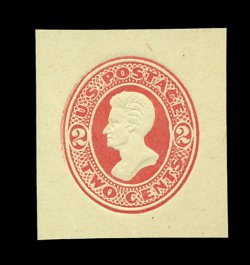 1132 og U137A image#U137A, 2c Vermilion on white, mint cut square, measuring 33x38mm, brilliantly fresh and clean, with strong color and embossing on bright paper, small thin spot of little relevance considering the enormous rarity of this cut square, still very fine; one of the most important rarities in U.S. postal stationery as it is believed that only two cut squares exist and there are no known entires, with this being the first appearance of a Scott #U137A in over three decades; even the great postal stationery collections formed by such luminary collectors as Lilly, Thorp and Cole did not have an example of this cut square; the catalog value of this cut square has changed little over the years since no example has made an appearance on the auction market, therefore we believe that the final realization of the example offered here will far eclipse its current Scott evaluation; 1995 PF certificate. (Image) 25,000.00