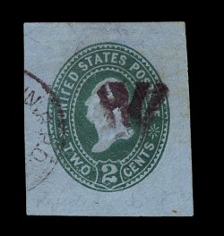 1185 og U309 image#U309, 2c Green on manila, an immensely rare mint cut square, being only the second mint cut square we have ever seen offered (and only two mint entires are recorded), measuring 34x39mm, strong color on distinctive manila paper, there is a faint stain at top which has been largely removed and is otherwise very fine; the only other mint example of this cut square sold in recent memory was in our June 2000 sale of the marvelous collection of cut squares formed by Dr. Jerry Summers, his full corner example realized $20,900.00 versus a then catalog value of $8,000.00; 1959 PF certificate; ex-"Michigan" Collection. (Image) 17,500.00