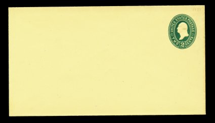 1188 ogc U319 image#U319, 2c Green on amber, die 89, size 13, knife 74, wmk. 7, an immaculate mint entire, brilliantly fresh and crisp, extremely fine; especially scarce this choice (UPSS #1045). (Image) 250.00