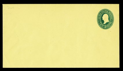 1193 ogc U323 image#U323, 2c Green on amber manila, die 89, size 13, knife 74, wmk. 7, mint entire, strong embossing and quite clean overall, very fine; a choice example of this truly scarce entire (UPSS #1051). (Image) 625.00