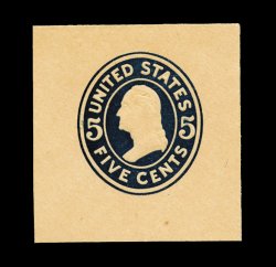 1198 og U418b image#U418b, 5c Blue, printed on buff in error instead of white, die 2, mint cut square, being a premium quality full corner example measuring 42x44mm, exceptionally fresh, extremely fine; this rarity is only known as a cut square. (Image) 2,500.00