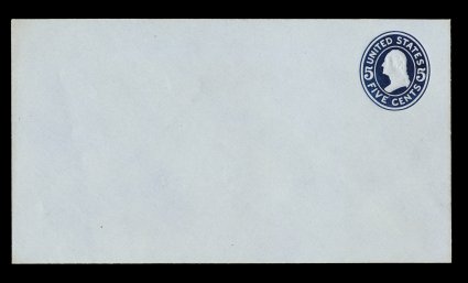 1200 ogc U418d image#U418d, 5c Blue, printed on blue in error instead of white, die 1, UPSS die 125(A), size 10, knife 57, wmk. 15, a very rare mint entire, being in a marvelous state of preservation, fresh and bright, crisp edges, extremely fine; it is believed that no more than seven examples of this entire exist; signed "WHM" (William H. Maisel) (UPSS #2003). (Image) 3,000.00