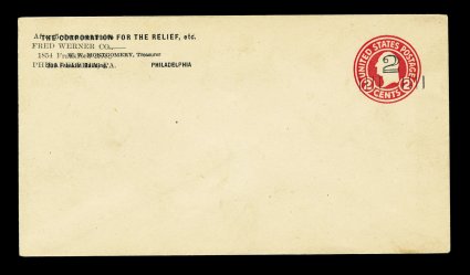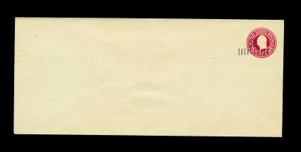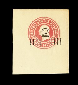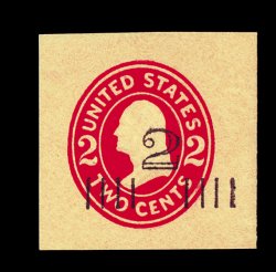 surcharge on Scott #U420, mint cut square, being a gem full corner example,