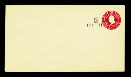 #U453, 2c on 2c Carmine on white, die 3, type 3 surcharge, premium