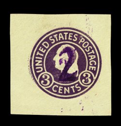 1244 og U487 image#U487, 1 1/2c on 2c Green on amber, mint cut square, 36x38mm, extraordinarily detailed embossing, a very fine and choice example of this elusive cut square. (Image) 850.00