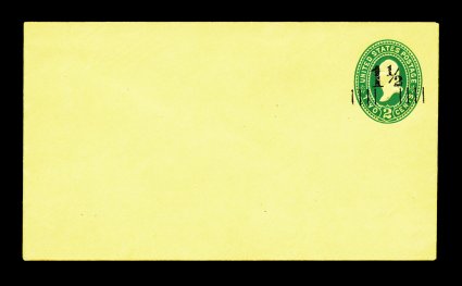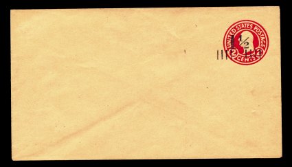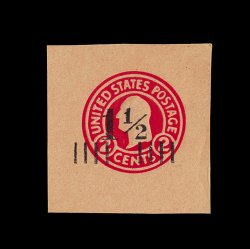 1255 ogc U503 image#U503, 1 1/2c on 2c Carmine on oriental buff, die 5, UPSS die 138(E), size 10, knife 58, wmk. 22, mint entire, choice very fine (UPSS #3179). (Image) 500.00