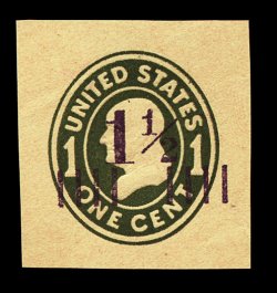 1250 ogc U494 image#U494, 1 1/2c on 1c Green on manila, die 1, UPSS die 111(A), size 10, knife 54u, wmk. 15, mint entire, very fine and seldom seen (UPSS #3116a-15). (Image) 500.00