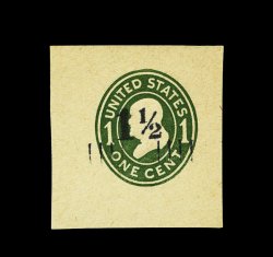 1249 og U494 image#U494, 1 1/2c on 1c Green on manila, die 1, mint cut square, measuring a large 43x46mm, fresh and extremely fine. (Image) 350.00
