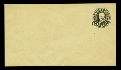 1245 ogc U487 image#U487, 1 1/2c on 2c Green on amber, die 88(B), size 7, knife 31, wmk. 12, superb mint entire, outstanding detailed embossing on immaculate paper, sharp edges as well, extremely fine; an especially scarce entire in this gem quality (UPSS #3079). (Image) 1,250.00