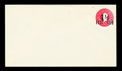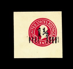 1253 ogc U502b image#U502b, 1 1/2c on 2c Carmine on white, die 7, UPSS die 140(H), size 13, knife 78, wmk. 25, mint entire, very fine; a rather elusive entire, as evidenced by its absence in the William S. Floyd collection; signed George S. Norton (UPSS #3178). (Image) 550.00