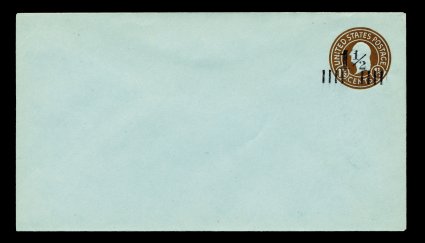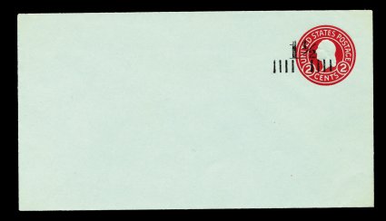 1257 ogc U504a image#U504a, 1 1/2c on 2c Carmine on blue, die 7, UPSS die 140(H), size 10, knife 57, wmk. 27, mint entire, immaculately fresh and with sharp edges, extremely fine (UPSS #3181). (Image) 450.00