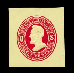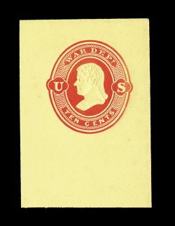 1294 ogc UO58 image#UO58, 6c Red War Dept. on cream, die WD 13, size 21, knife 100, wmk. 2, large mint entire in an excellent state of preservation, incredibly detailed embossing, extremely fine; especially desirable in this premium condition (UPSS #WD113). (Image) 250.00