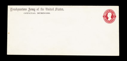 1290 ogc UO43 image#UO43, 30c Vermilion War Dept. on white, die WD9, size 21, knife 98, wmk. 2, handsome large mint entire, with printed "Headquarters Army of the United States./Official Business." corner card at top left, strong detailed embossing, tiny tone speck of no consequence at far left edge, choice very fine (UPSS #WD47). (Image) 550.00