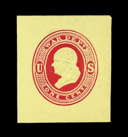 1283 ogc UO30 image#UO30, 1c Vermilion War Dept. on white, die WD1, size 6, knife 17, wmk. 2, an immaculate mint entire, superb embossing on pristine paper, extremely fine; signed "W.H.M." (William H. Maisel) (UPSS #WD23). (Image) 350.00