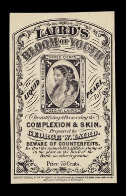1458 O RT14c image#RT14c, Laird, Geo. W., 3c Black, imperforate, pink paper, an absolutely superb example of this rare and incredibly beautiful Perfume stamp, fabulously fresh and crisp, with prooflike color and impression on unblemished pink paper, four lavishly large and symmetrical margins, an extremely fine gem in every regard; it is highly unlikely that this stamp's equal exists; 2001 PF certificate; ex-Col. Shroeder. (Image) 1,000.00