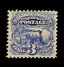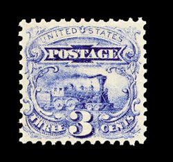 143 nh 114 image#114, 3c Ultramarine, pristine mint single, with lovely rich color and a crisp detailed impression on brilliant white paper, exceedingly well centered as well, o.g., n.h., very fine; 1998 PF certificate. (Image) for hinged 300.00