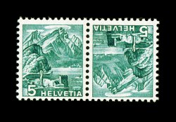 1583 nh K32y.1.09 imageZumstein #K32y.1.09, 1942 5c Blue green on thin transparent paper, tete-beche pair, wonderfully fresh and bright, o.g., n.h., very fine and quite scarce. (Image) 1,600SF