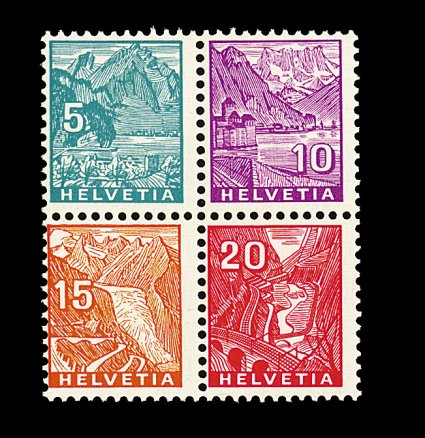 1587 nhbl Z19-22 imageZumstein #Z19-22, 5c-20c NABA, se-tenant block of four, fresh, o.g., n.h., fine. (Image) 600SF+