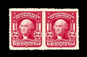 284 og 320 image#320, 2c Carmine, Ty. I, imperforate, with private "sewing machine" perforations, horizontal pair, outstanding centering within these unusual perforations, radiant color, o.g., h.r., couple of thin spots, extremely fine appearance. (Image) Est. 150-200