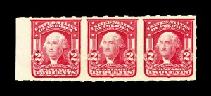 285 og/nh 320b image#320b, 2c Scarlet, Ty. I, imperforate, privately rouletted, left sheet-margin horizontal strip of three privately rouletted all around, well centered, o.g., end stamps n.h., very fine; most unusual. (Image) Est. 150-200