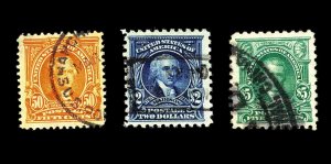 287 O Precancels on 1902-03 Series stamps, an unusually comprehensive lot of over 135 precancels from fourteen different states, not limited to just low values, as evidenced by the presence of both Chicago (L-4TS) and Philadelphia (L-1E) with values to the 50c, plus there is an elusive $1.00 with Philadelphia precancel (a value known from only three cities), also included are examples of more unusual precancels such as the Northampton coffin in a circle (L-5E), the Ft. Wayne tombstone (L-1E), the Jackson oval (L-1E), the Waterbury gear (L-1TS) and the Lansing spider (L-1E), plus there are precancels found on the 1916 $2.00 and $5.00 values, condition slightly mixed as always, but a desirable lot for the specialist. Est. 400-500