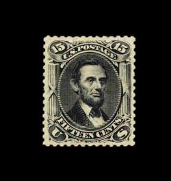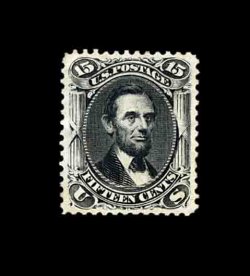 182 ng 108 image#108, 15c Black re-issue, unused, extraordinarily well centered within large margins, strong re-issue color and impression, there is a tiny trace of a thin speck in the bottom right corner that is nearly undetectable, otherwise extremely fine; clear 1995 PF certificate. (Image) 2,500.00