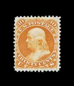 183 og 110 image#110, 30c Brownish orange re-issue, deep rich color and an especially strong impression, o.g., minor h.r., a fine example of this rare re-issue; only 346 issued. (Image) 5,500.00