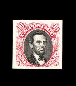 184 og 111 image#111, 90c Blue re-issue, deep rich color and a strong impression, nicely centered, large part o.g., faint crease at bottom left, very fine appearance; only 317 issued; clear 1967 PF certificate ("unused o.g., genuine"); ex-Hindes. (Image) 6,500.00
